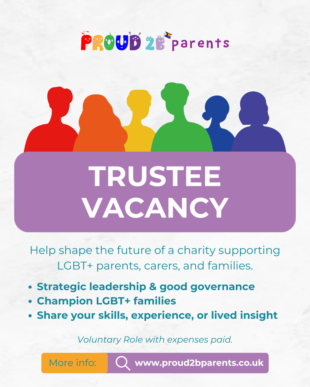 Are you passionate about storytelling, communications, and creating impact through inclusive messaging? Proud 2 b Parents is seeking a PR & Marketing Trustee to help us amplify the voices of LGBT+ parents, carers, and families..